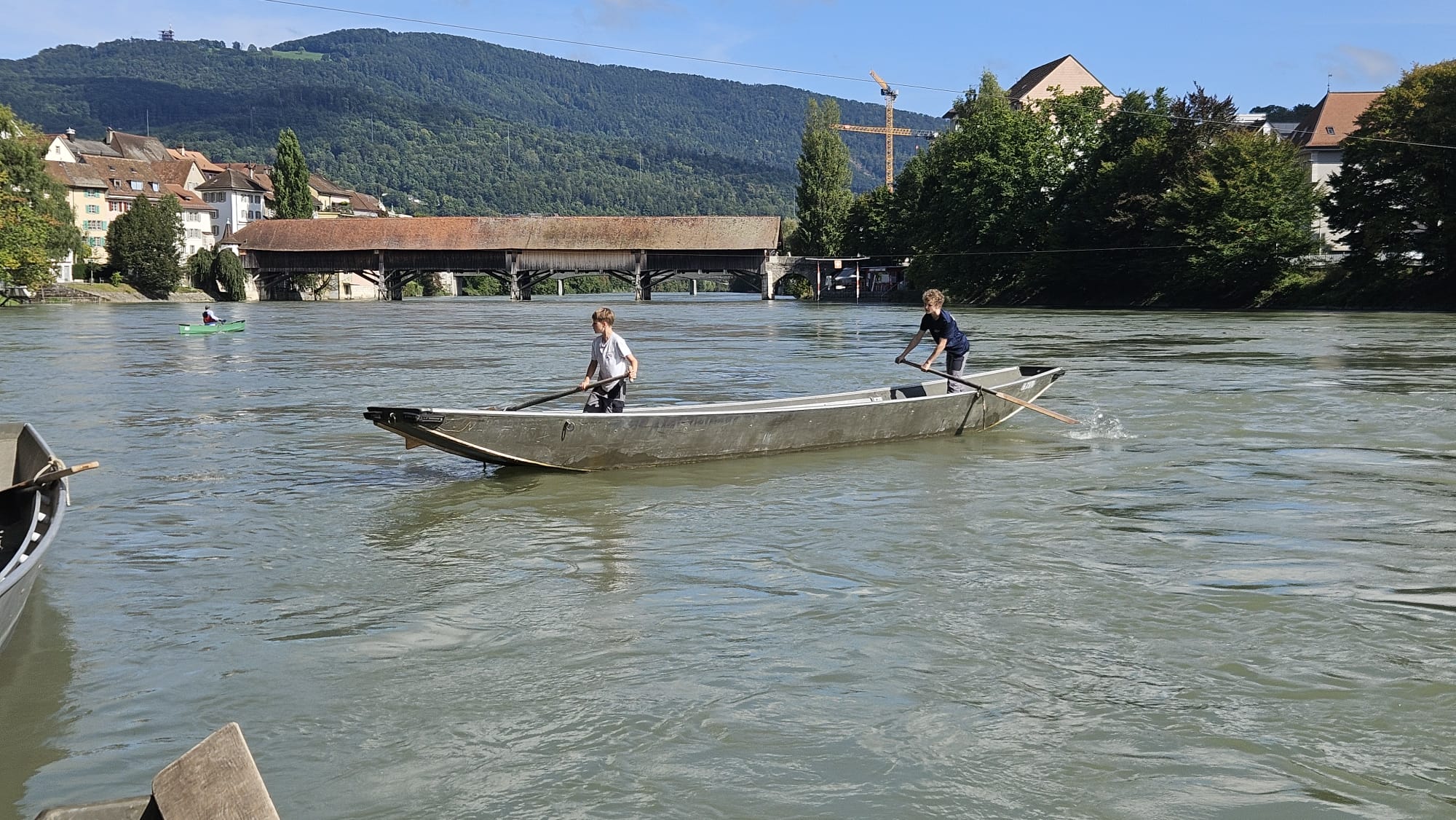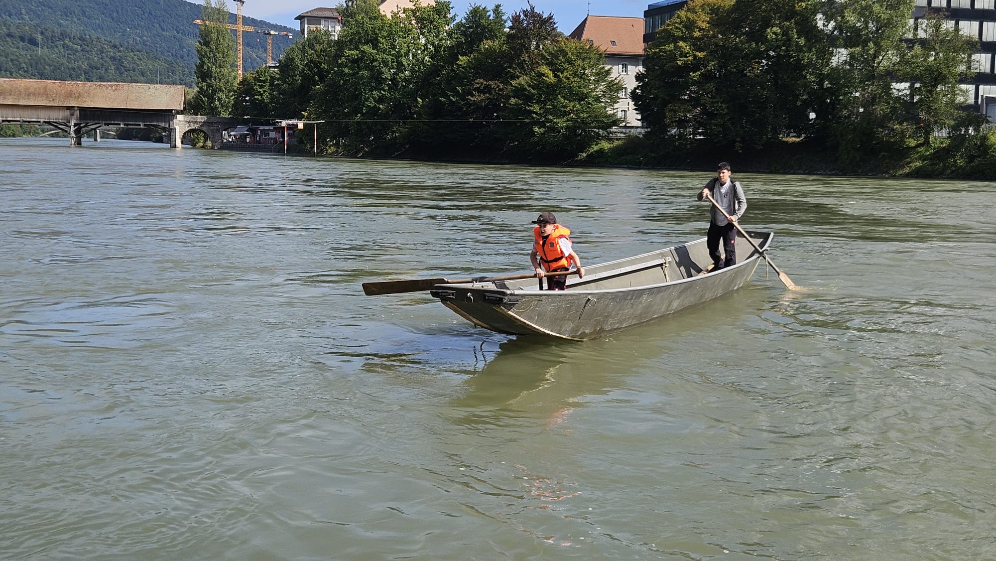 Zusammen mit den Oltner Jungpontonieren fanden am 6. September 2025 die Prüfungen in Olten statt. Da es bei einigen neuen JP’s nicht vorgängig für das Absolvieren der Schwimmprüfung reichte, konnte diese direkt vor dem Fahren im Freibad Olten durchgeführt werden. Die beiden Experten des Lehrverbandes Genie/Rettung/ABC prüften nebst dem Schwimmen auch das Fahren und insbesondere das Schnüren.